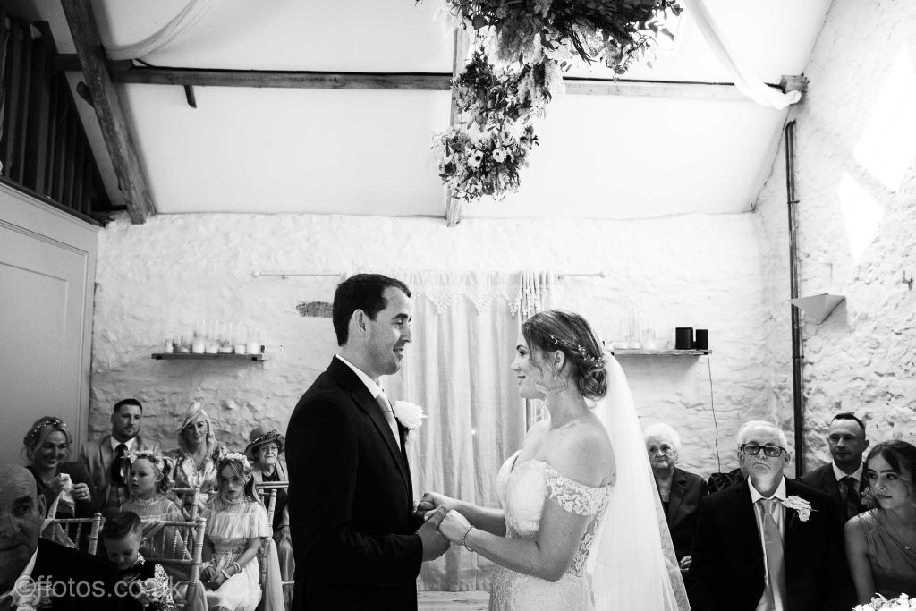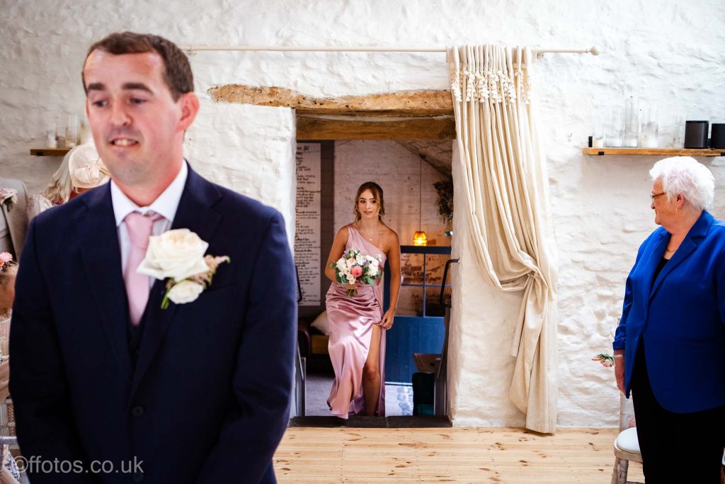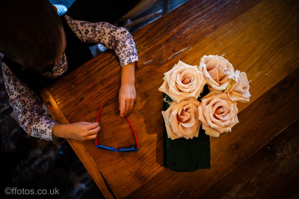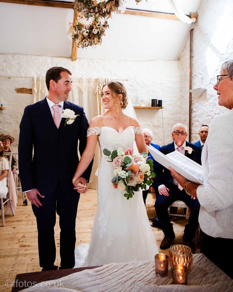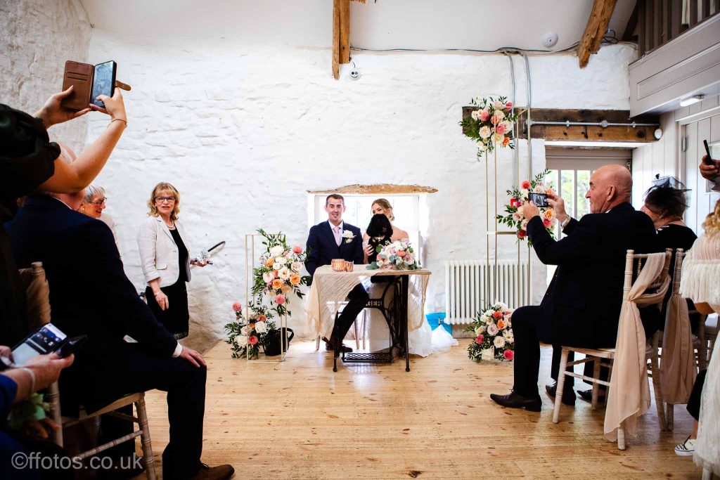 Cerys arrived in her own car an electric Mustang! Everyone was so dapper. There was laughter, tears of joy , tears of unhappiness (page boys having to wear bow ties, lol), there were Paper aeroplanes! yes loads of paper aeroplanes! Chris loves paper aeroplanes! The venue was subtly decorated with beautiful boho flower displays accentuating the rustic charm of the building, the vows were heartfelt and a beautiful ceremony was witnessed and documented.