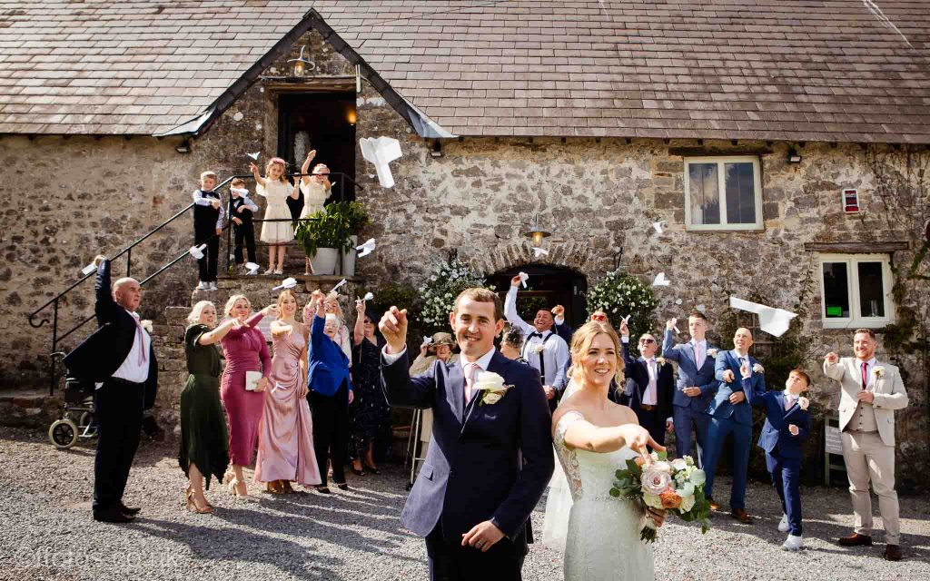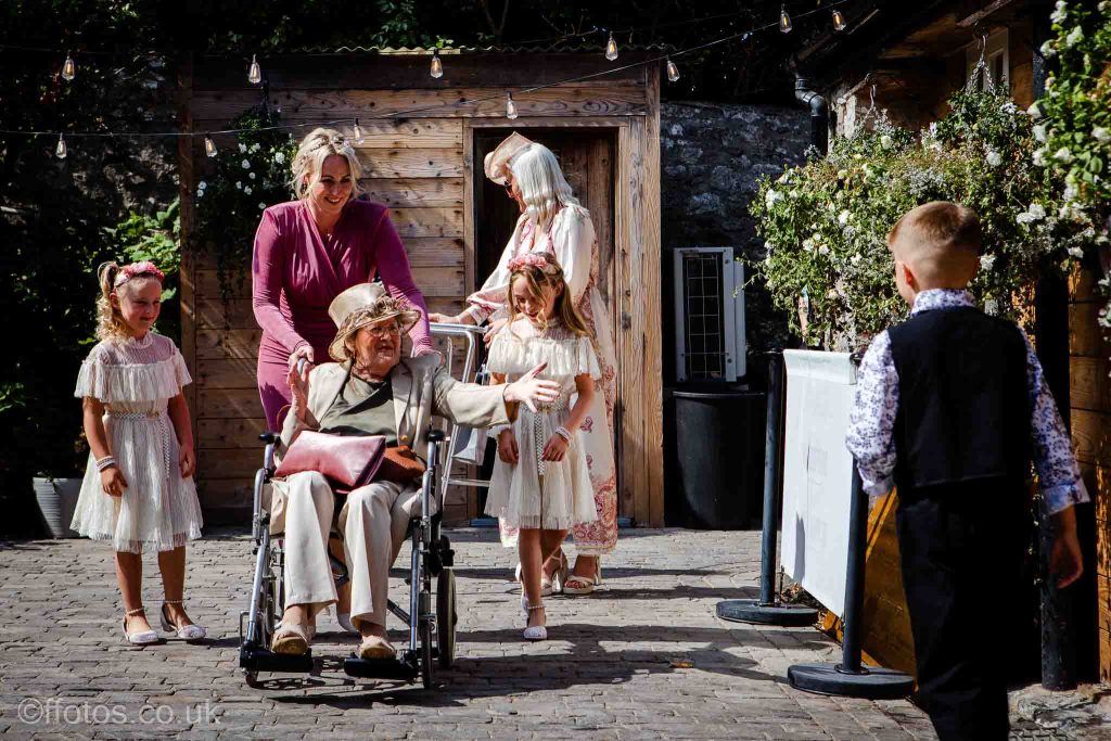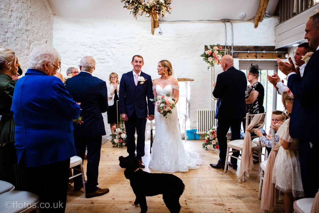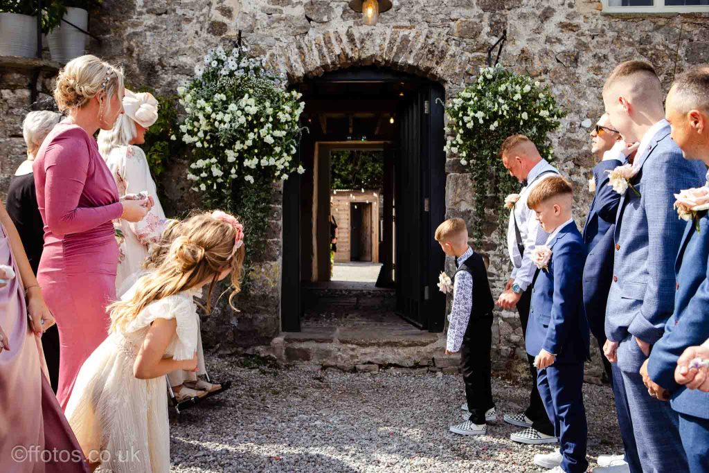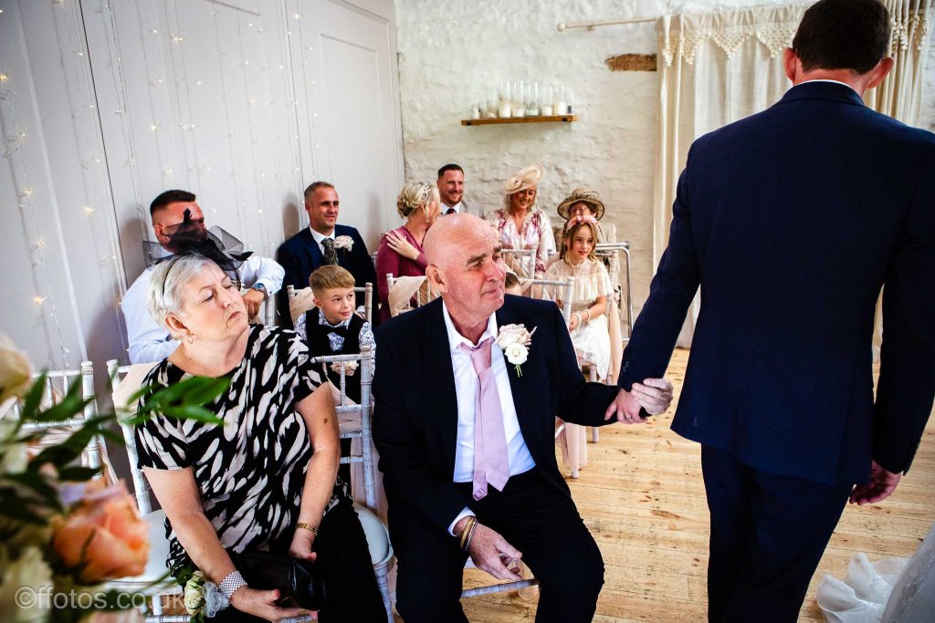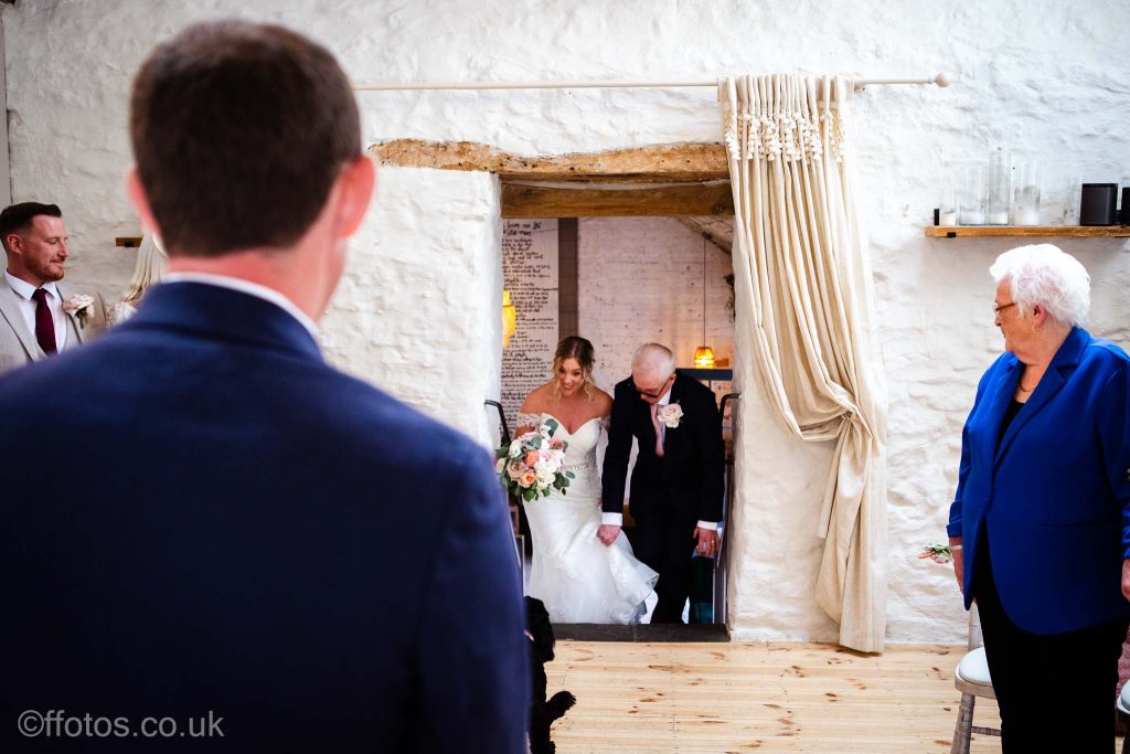 Cerys arrived in her own car an electric Mustang! Everyone was so dapper. There was laughter, tears of joy , tears of unhappiness (page boys having to wear bow ties, lol), there were Paper aeroplanes! yes loads of paper aeroplanes! Chris loves paper aeroplanes! The venue was subtly decorated with beautiful boho flower displays accentuating the rustic charm of the building, the vows were heartfelt and a beautiful ceremony was witnessed and documented.
